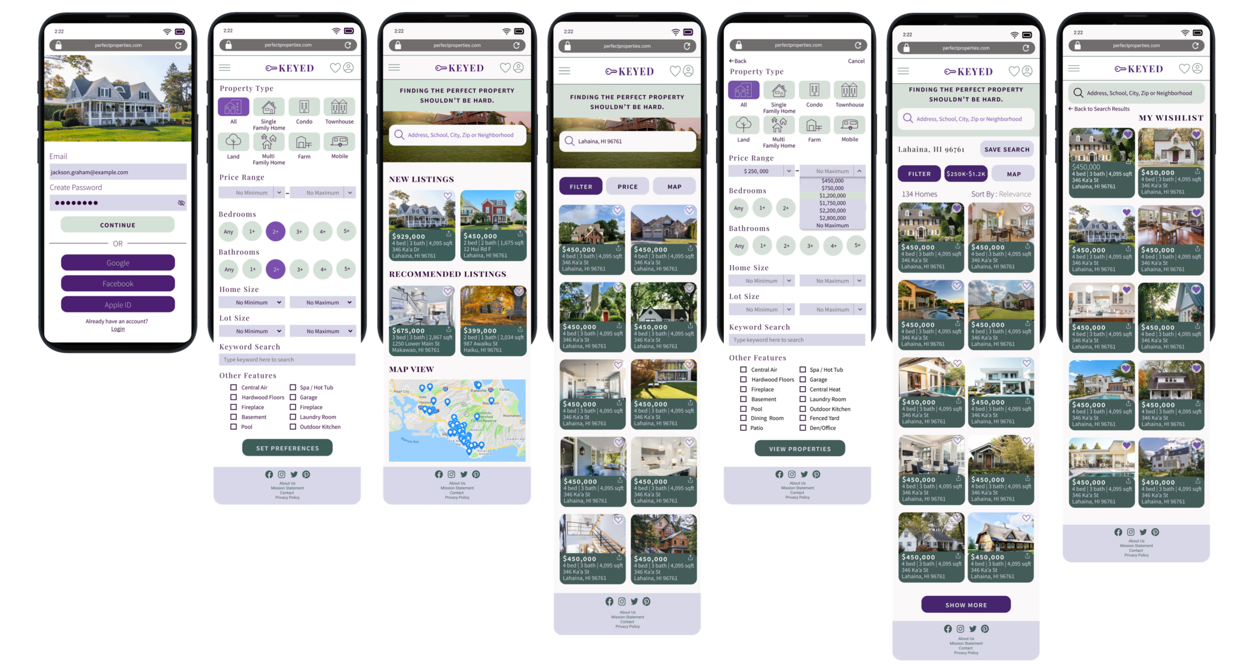 Finding the perfect real estate property, while exciting, can easily get complicated and overwhelming, especially as a first time homebuyer. Keyed was designed to simplify and streamline the process for the user based on the user goals and needs.